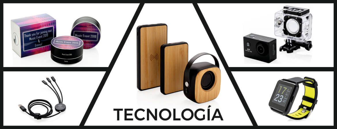 En la actualidad más que nunca, vivimos permanentemente conectados con todo tipo de tecnología, lo que hace, que todos los regalos promocionales que tengan que ver con ella, tengan muy buena acogida. Power bank, cargadores inalámbricos, todo tipo de cables para cargar los dispositivos, soportes para móviles, tapa webcam, cámaras deportivas, relojes inteligentes y un largo etc.